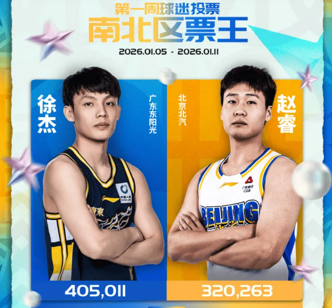 昨晚,CBA公司公布了一则重要的消息,CBA全明星赛第一周的票选出炉了,来自广东队的后场悍将徐杰,以405,011票,成为了全明星赛的总票王,超过了第二名的赵睿80000票,可以说,只要保持正常状态,徐杰将会成为CBA全明星赛的票王。